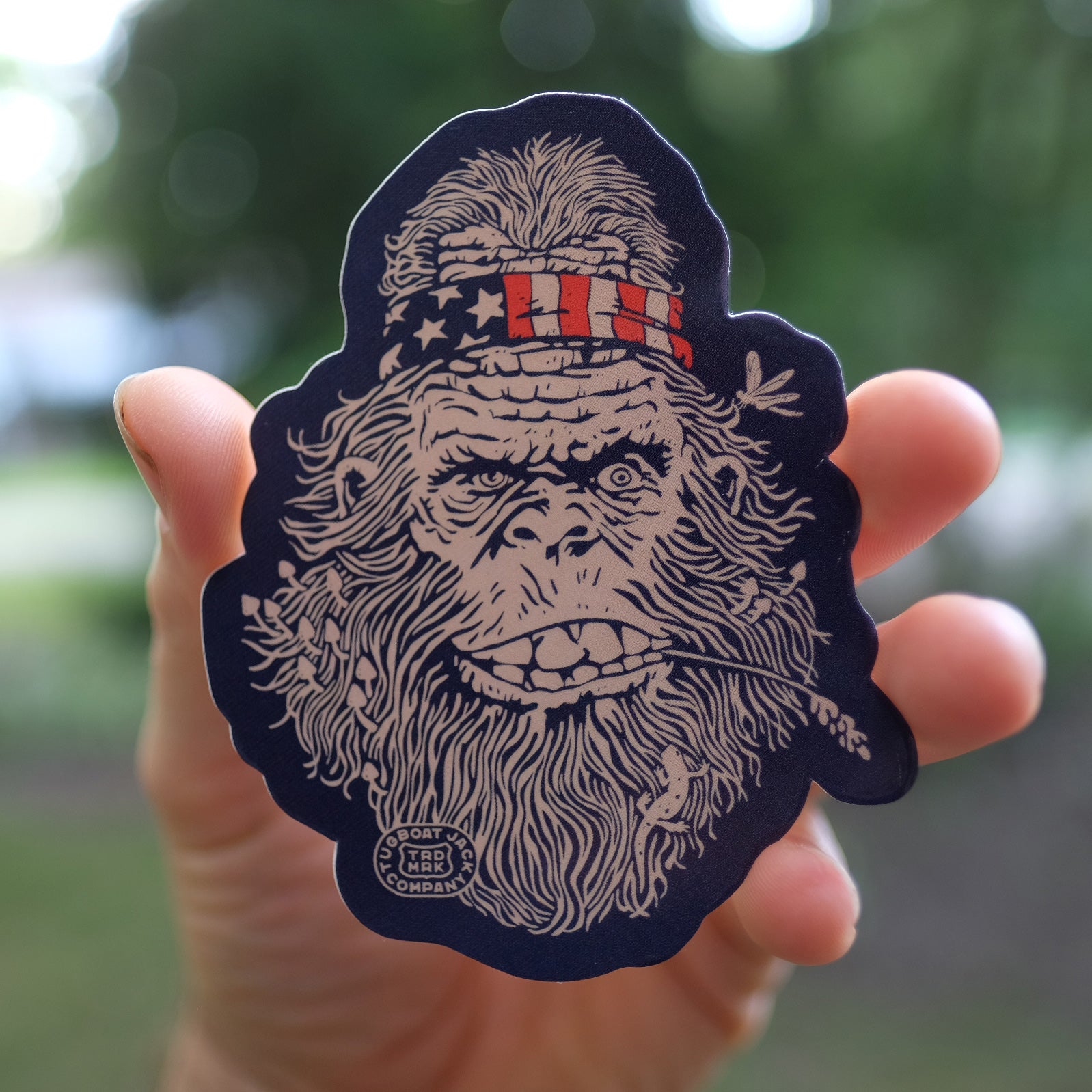 3.375" X 4" screen printed, vinyl sticker of our American Sasquatch design.