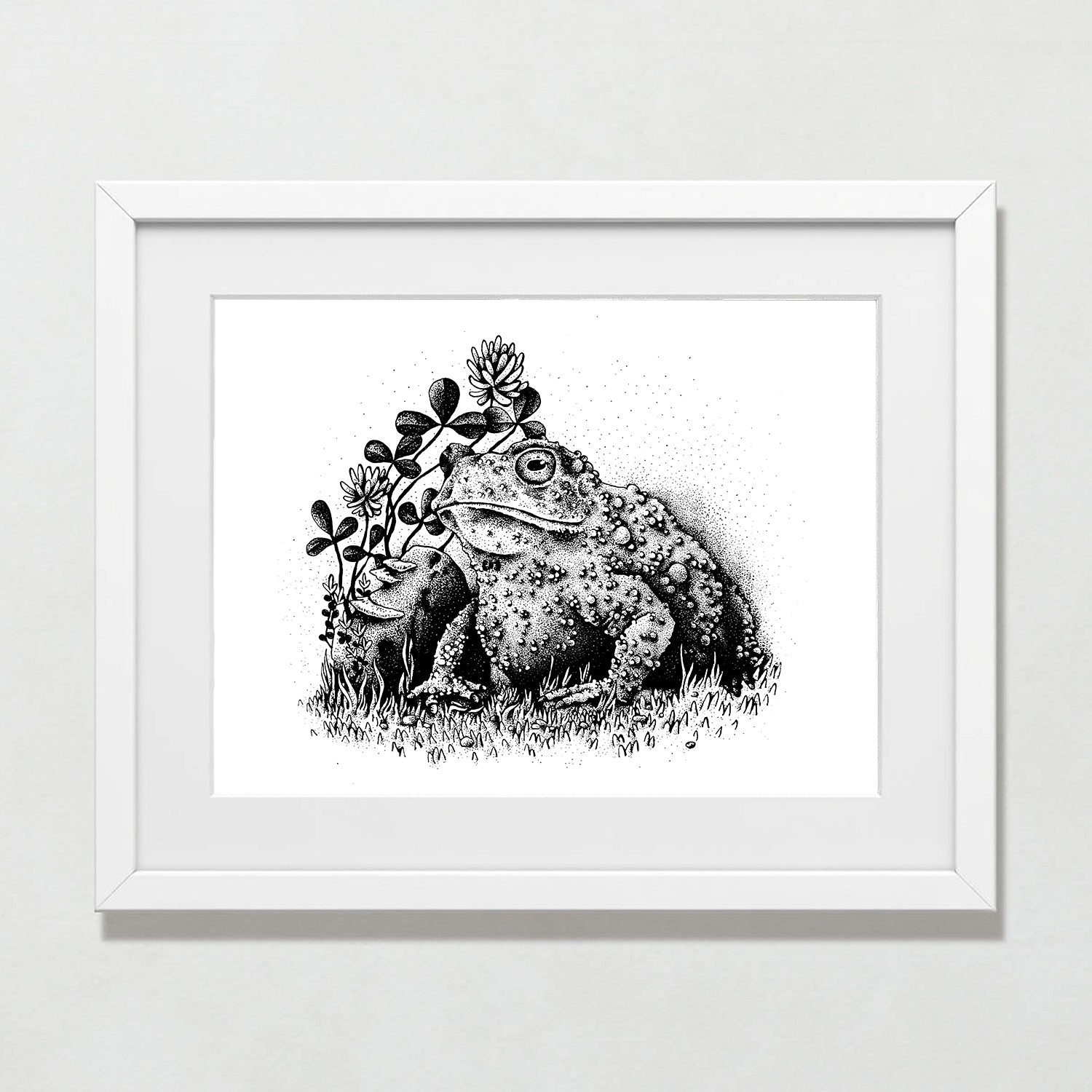 Invite the spirit of this garden toad into your home with our 11"x9" print. It is printed on matte finish 175 gsm fine art paper.