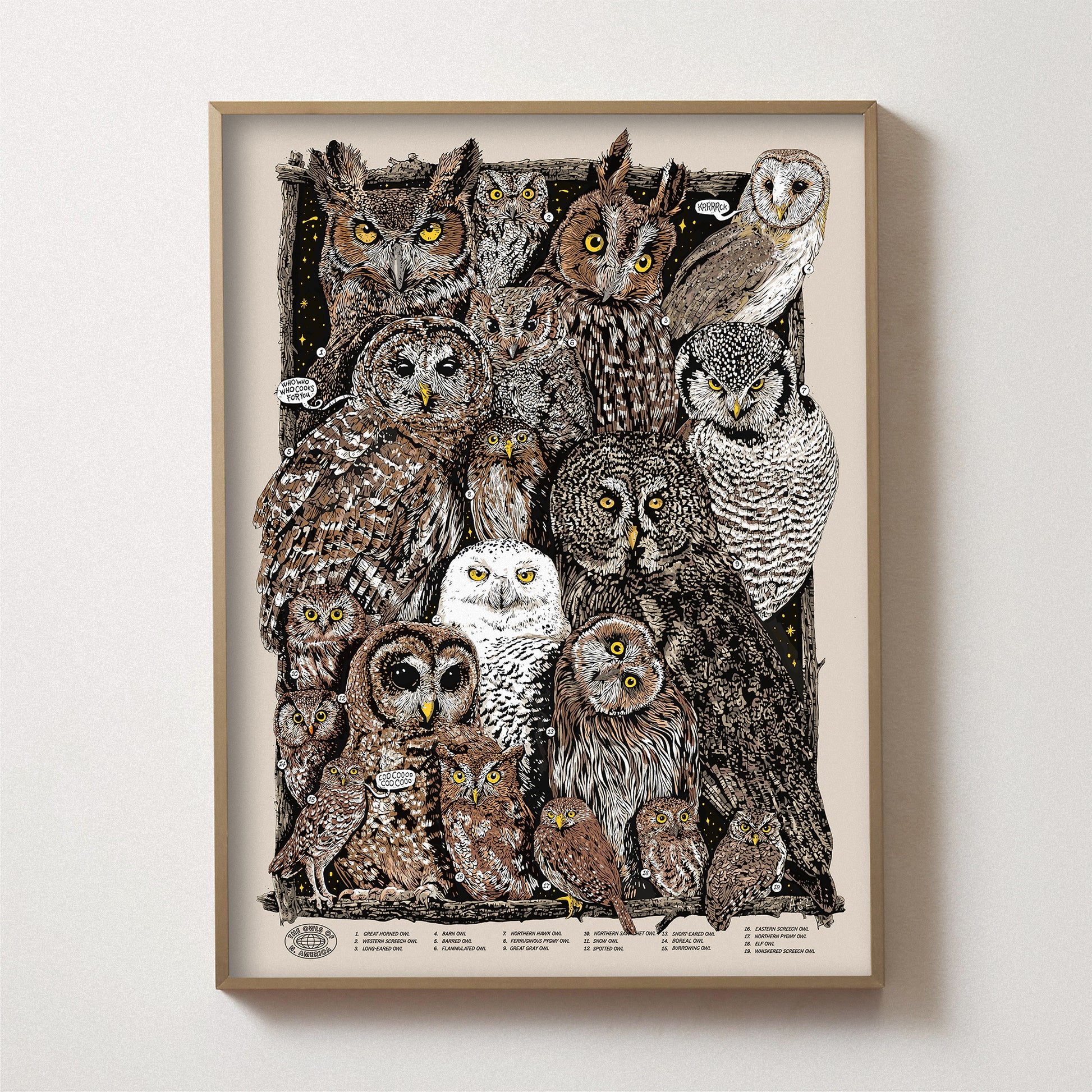 This print of the 19 native species of North America is hand illustrated and printed on 175 gsm fine art paper and is available in two sizes.