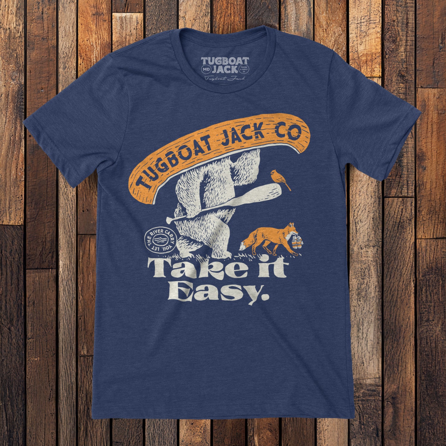 Printed on heathered navy unisex tees that are softest, coziest shirts in all the land.