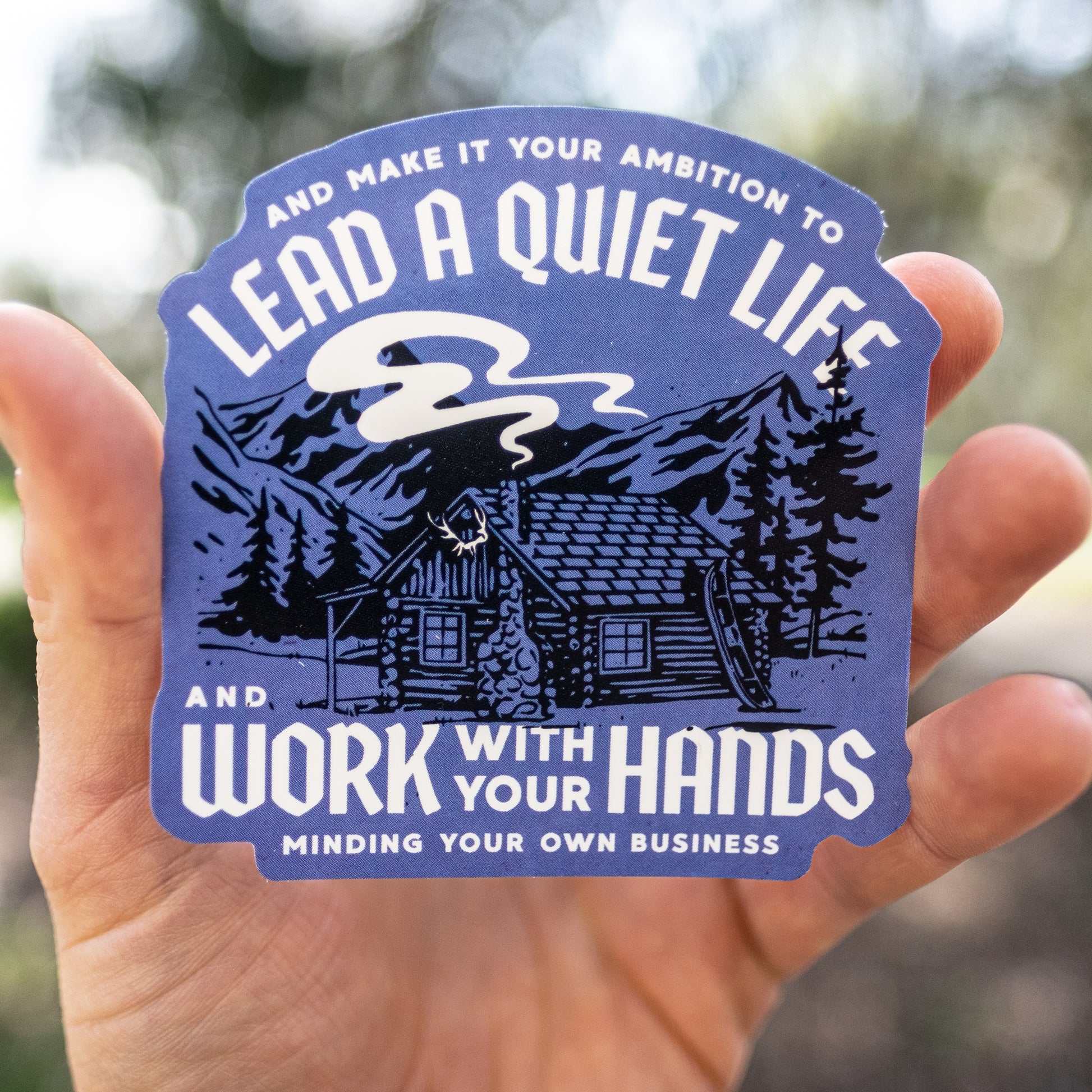 3.5"x3.5" screen printed, vinyl sticker of our live a quiet life design.